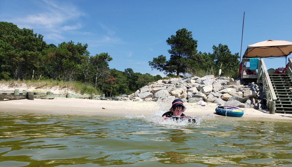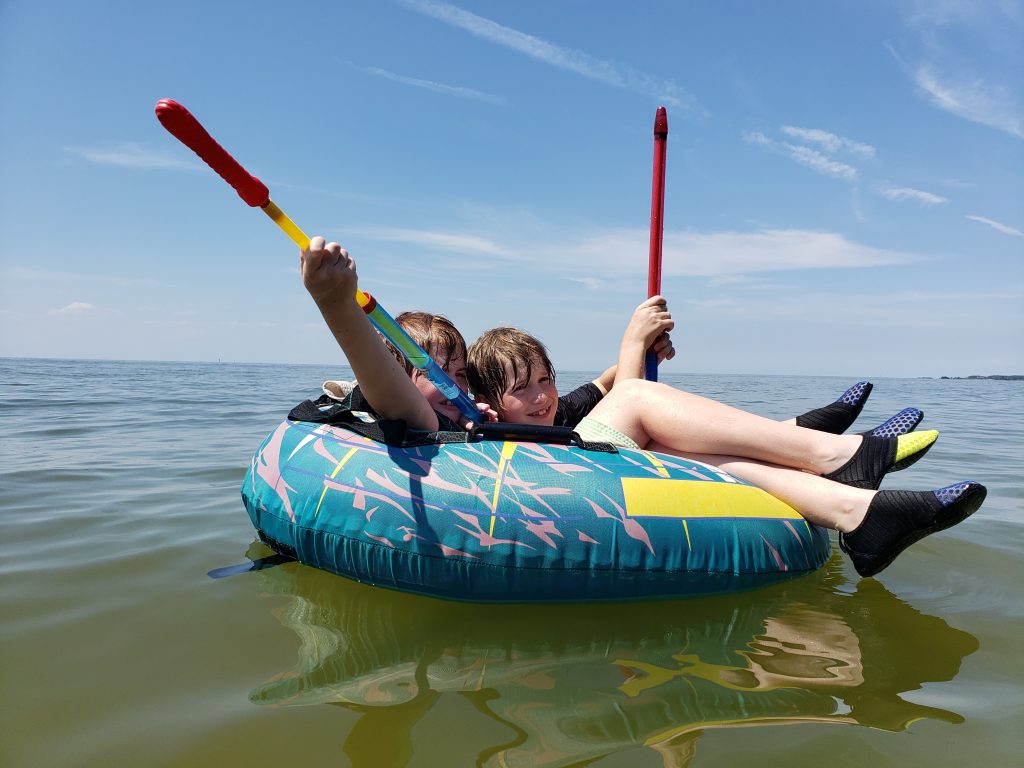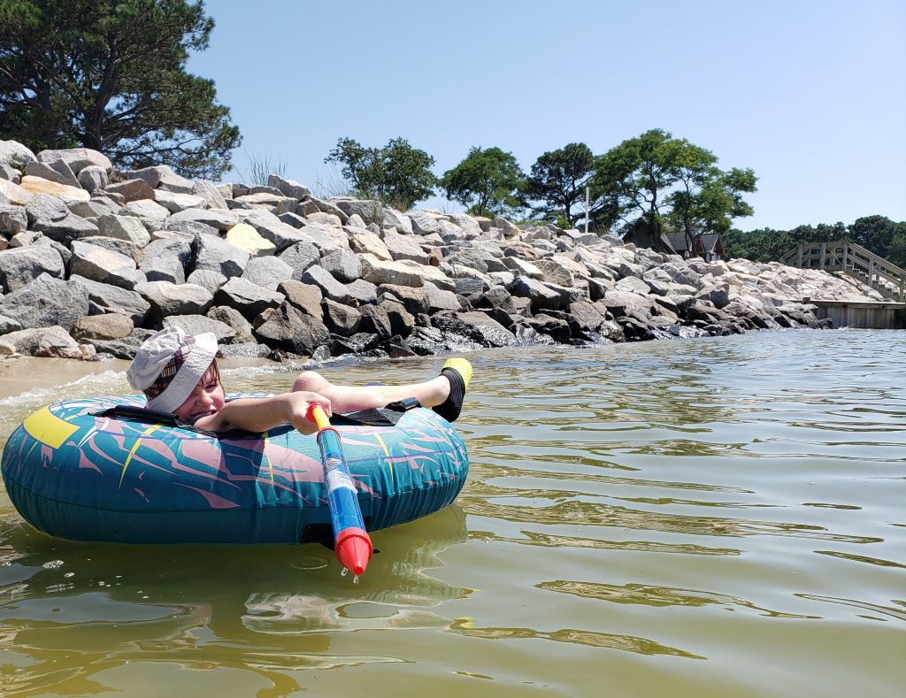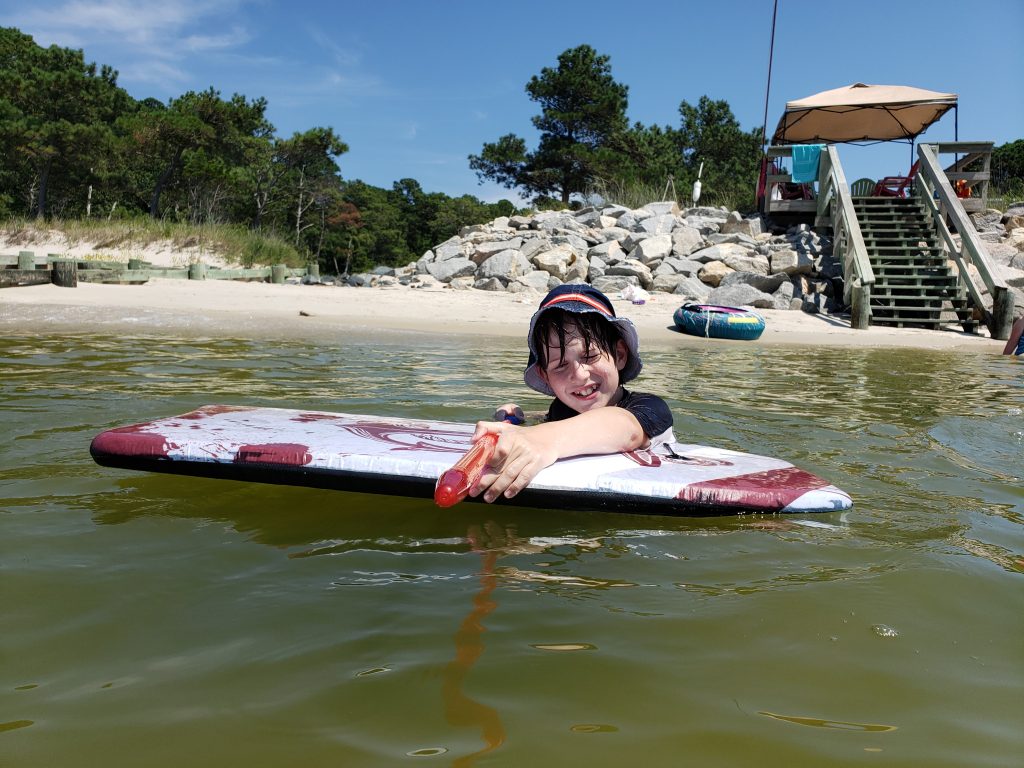 Last month, I took B & G down to my brother’s for 10 days. We had a great time and while I had to work; we still managed to do a TON of fun stuff. Lot’s of beach time, Chincoteague, putt putt, boating, Mister Whippy’s (which is better then Island Creamery!), tubing, the boys made tomato tacos (Broc’s idea), parties, games, made new friends and more! Broc even won $50 at PG’s work party shooting a Potato Gun. He tied for first with a women from PG’s work and they decided to split the $100.