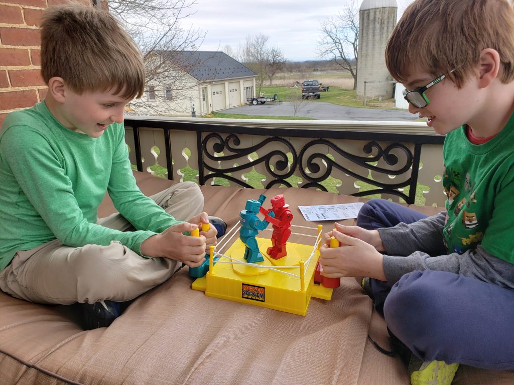 Call the neighbor who has goats and a little fenced in area to put him in. Took us a while to get him over there, but we finally managed.