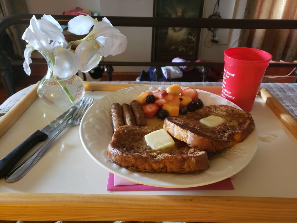 I ended up posting on FB and found the owners a few mins later. They came and got him. The next day they messaged me and said that he was doing well.