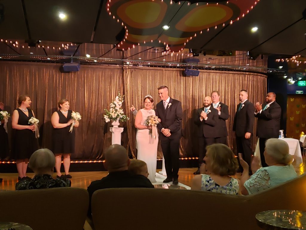 The wedding was for my cousin Jim and his gorgeous wife Sarah.  They were married on a Carnival cruise and then right after the wedding they set sail for Bermuda, but was re-routed to Dominican Republic because of the hurricane.