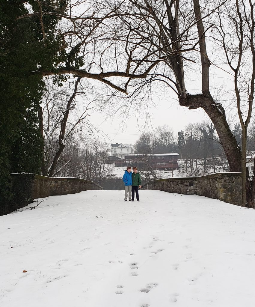 Boys and I were out running errands one day and decided to stop at this stone bridge on 40. It is so pretty.