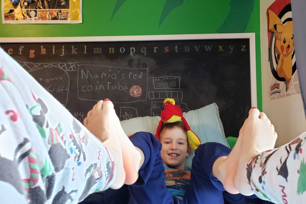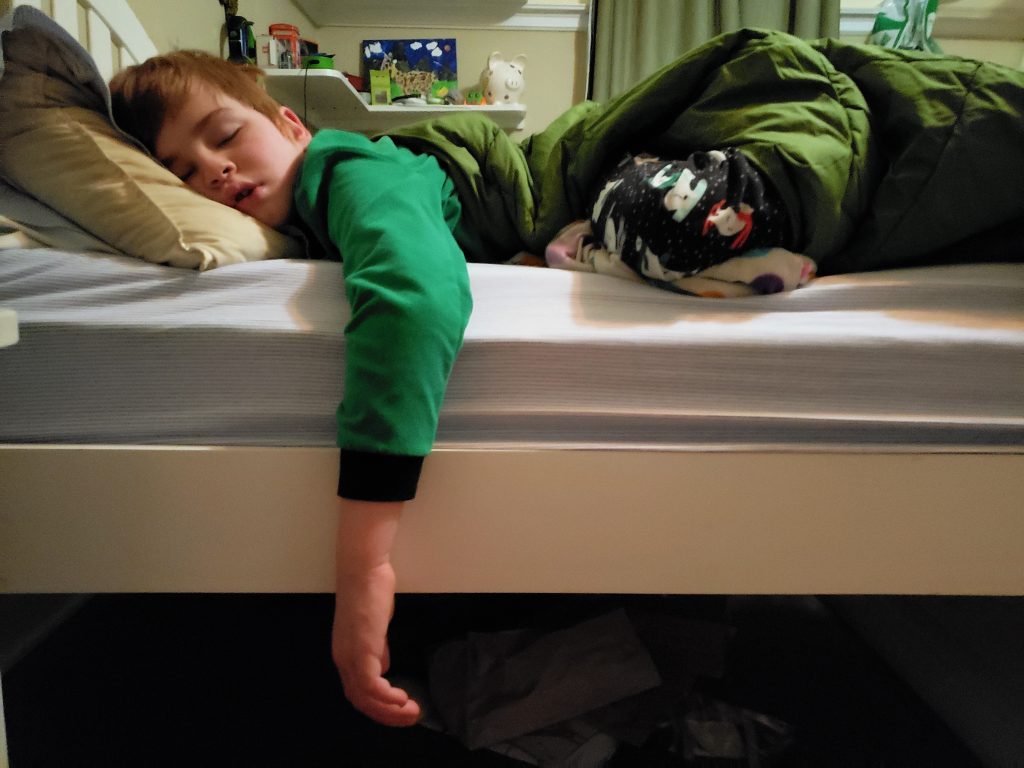 He sleeps just like me….not much moving around and Broc sleeps just like Tony. All over the place!