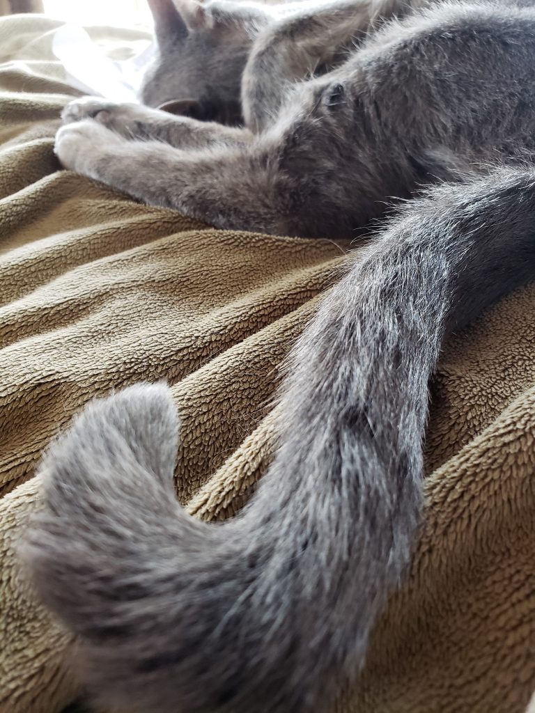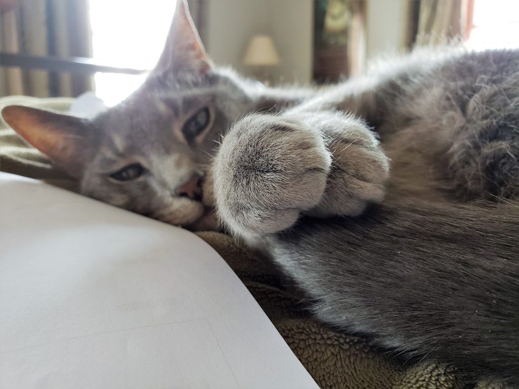 He is such a good kitty. Cosmo now has turned into my little side kick. Never leaves my side, works with me all day, follows me around. Really sweet. When Murph was a live I never realized Cos had it in him.