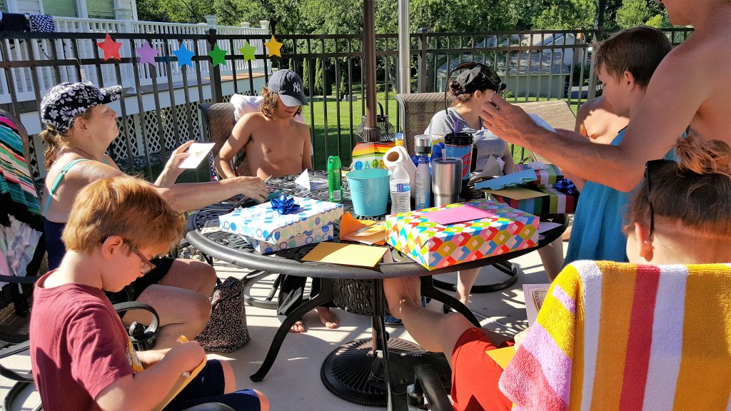 We did the 2nd annual Movie Night last week and everybody had a great time. There was swimming, water slides, badminton, all kinds of kids food, and before the movie started we unveiled the concession stand! Lots of popcorn, pretzels and movie theater candy. We watched Sherlock Gnomes (which I was not a fan of) and am looking forward to next year!